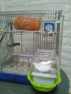 新居へ移ったので 羽根やシードの皮が飛び散らないように・・・