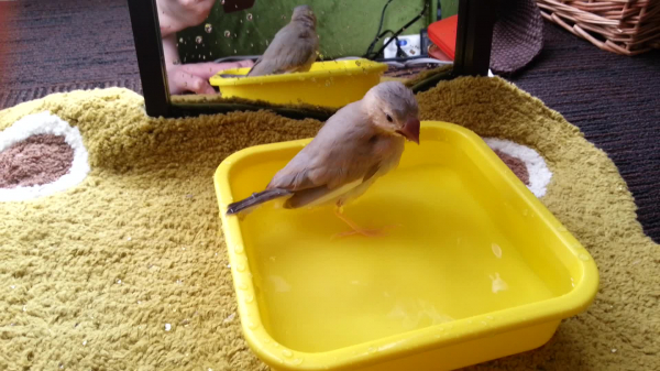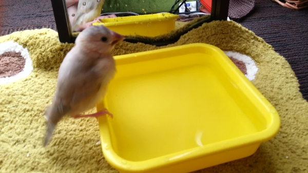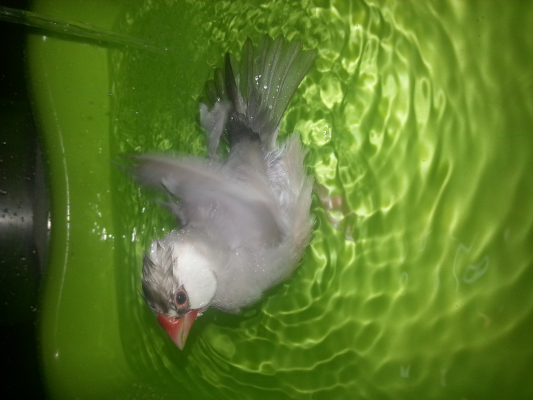 入浴時間は1分くらいかな〜文鳥なのにカラスの行水?!