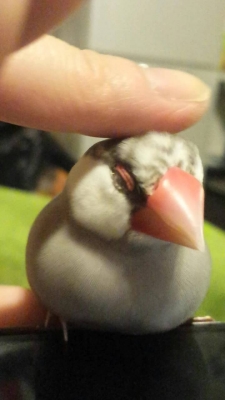 あ、尻尾をフリフリ震わせるのは、、私のお姉ちゃんが飼っている8ヶ月の桜文鳥のトリッピー(←名前)です★