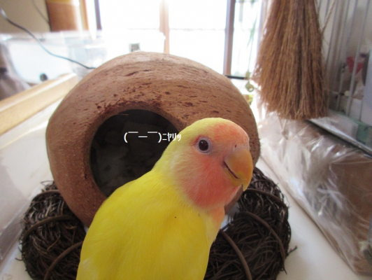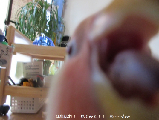 それが見たくて 放鳥時大き目のカケラを1枚あげたりも( ^艸^ )