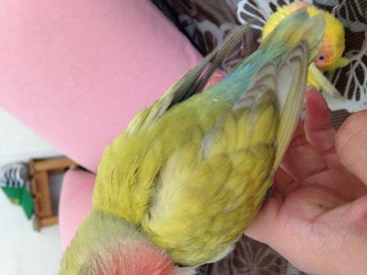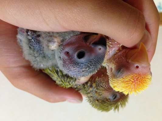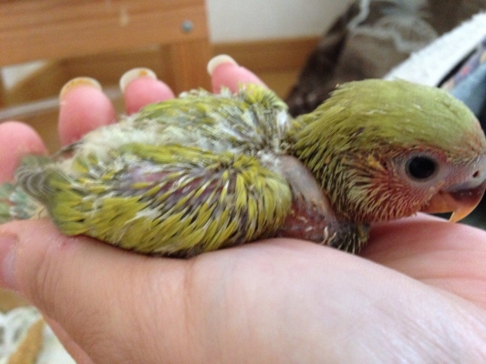 雛もたくさんのカラーがあって見ていて楽しいし、いいなぁーと思ってます。性別判定しようか考え中です。コザクラは見かけでオスメス分からないのが困りようですね。うちには現在コザクラの雌2羽と雄が2羽居ます。1ペアは出来ましたが、もう二人はすごく仲が悪く困ってます。misaさんのコザクラは初めは仲悪く次第にペアになったとかありましたか?