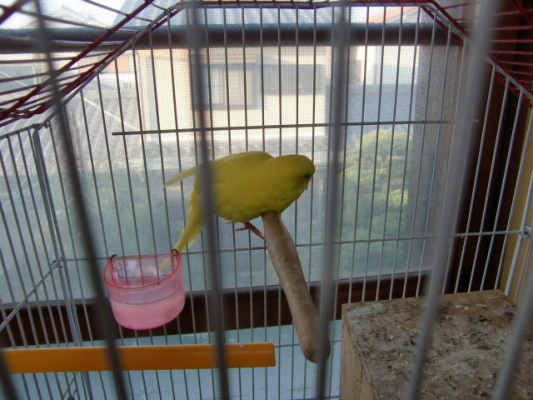 また、止まり木は危ないので、このコ一羽だけ、別ケージへ移し、止まり木ははずしてくださいね。