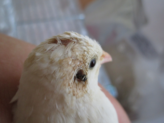 耳の穴も。周りの羽(毛?)が完全に伸び、目立たなくなりました。