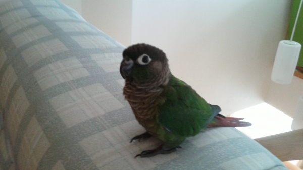 インコエリアでエサやりしたら、メキシコインコが頭に乗りました(o^^o)