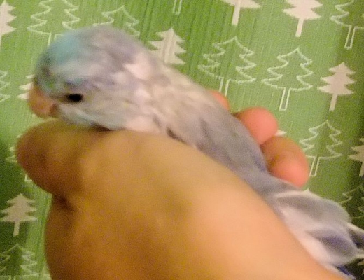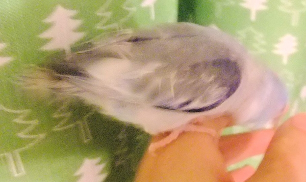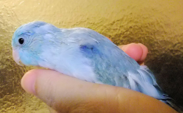 実はうちのマルも背中の翼の下の部分、羽毛の先に薄い薄い蛍光水色のような色があるんですよ。