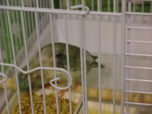 ゲージに入りたがらなくて、僕を嘴百裂拳で、つつきまくってくるのでタオルでグルンとして、