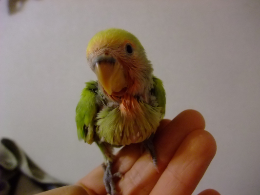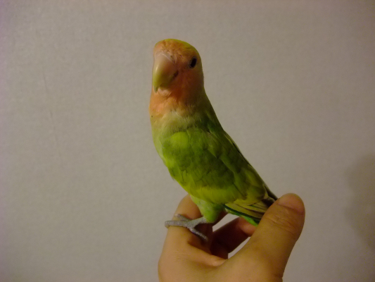この仔は、人間のように、感情を顔に豊かに表す、不思議な鳥ちゃんです。
