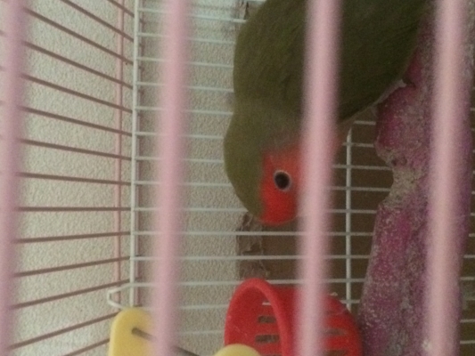 オスで吐き戻して食べるようなの行動が時々あり、肩や頭の上に乗って頭をかいたり、おしゃべりに参加しようとします