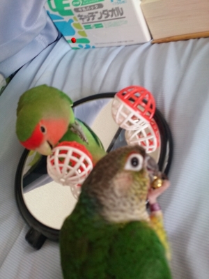 今日は朝早く起きて、ケージを掃除し、インコ達と沢山遊びました!!