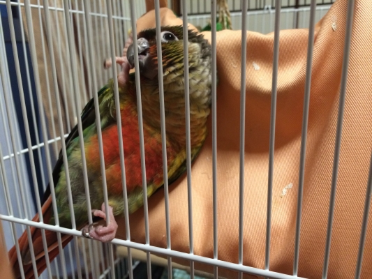 終始「ヤダ、ヤダ」と言ってすぐにケージに戻ってしまいました(^^;