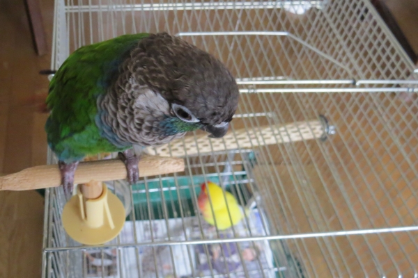 さてクーちゃんはいつものように一時間はうんともすんとも音さえ出しませんが時間がたつと、ケージをかき鳴らしたり、嘴でリズムをつけてコンコンとケージを鳴らします