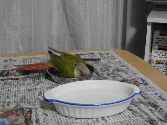 コルのお水浴び ひたすらくるまっているのが大好き☆ ☆2羽そろってごはん☆