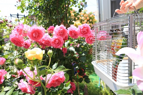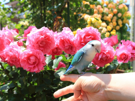 インコ達とコラボ写真を撮りたいとお願いしたんですよぉ〜♪