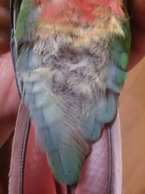 クーちゃんのおちりの羽がブルーできれいなのでUPしたんですよー