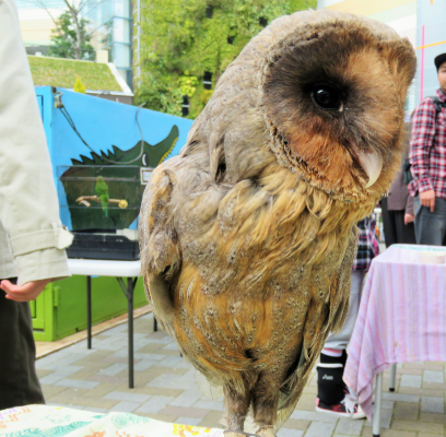 屋外だったので、コンゴウインコ、桃色インコ、コガネメキシコ、メンフクロウ以外はケージに入っていて、後はウサギや、トカゲ、アザラシ、ひよ子がいましたが