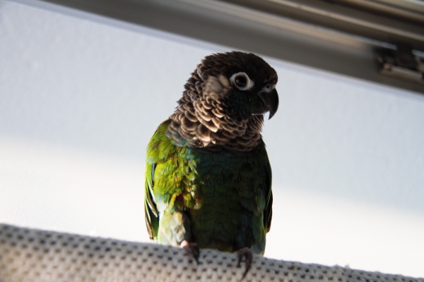 最近クーちゃんは、飛んできては私の頭に乗るようになって困っています