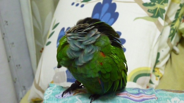 先生によるとウロコは自分で自分の羽根をかじってしまう個体が多いそうです。