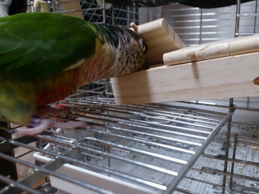 うちでは片方だけとめて、もう片方は止まり木の上で支えるようにしています。