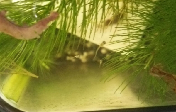 メダカちゃん、お腹に卵を抱えているですかぁー