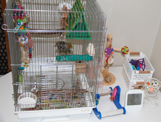 朝晩「ケージを開けて〜!!」とガンガン鳴らします(^^)