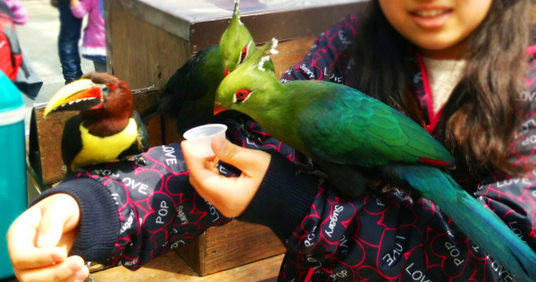 「インコにモテモテ」(@@)