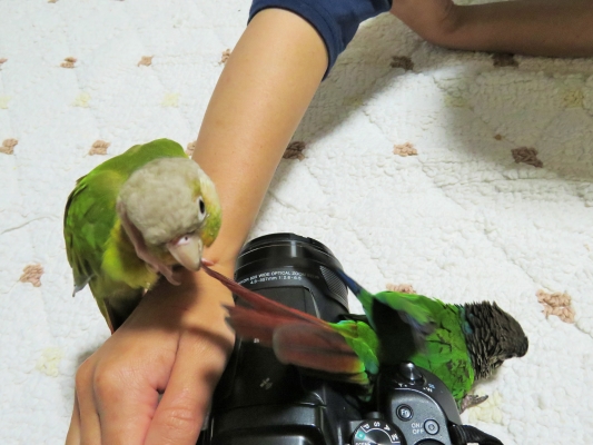 放鳥した時は、遊んでアピールが強く、かといって肩に乗せたりすると、ちみちみちみちみ。。。