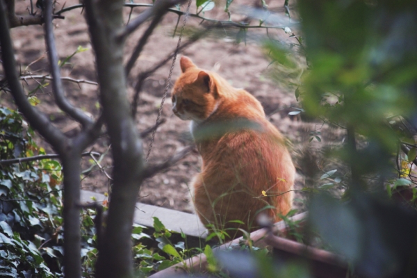 外でちょっと寒そうにしている野良猫、