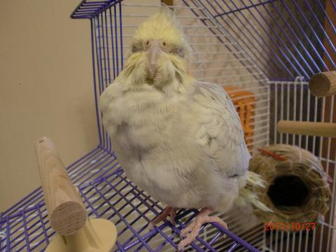 元気な時は一羽でもうるさいほどヘタクソなお歌を歌っていましたが、今は一言、二言、しゃべってはだまってしまいます。