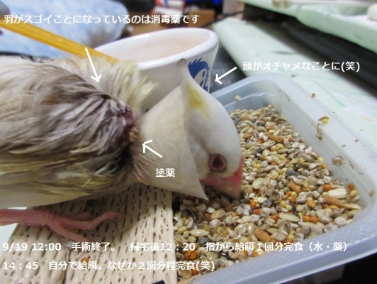 >ぴーは手術後の夜、なぜかぴっ♪ぴっっ♪と足どりも軽くすごくご機嫌?で、座った私の肩まで短距離飛んできて、慌てて止めさせました(^ ^;)