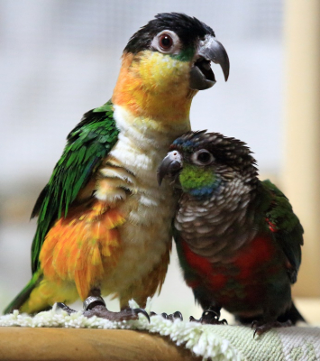 ズグロシロハラインコとアカハラウロコインコです。