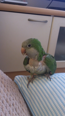 2014/9/30東京都葛飾区で二羽のカラスに追われて我が家のベランダに落ちてきたオキナインコさんを保護しています。