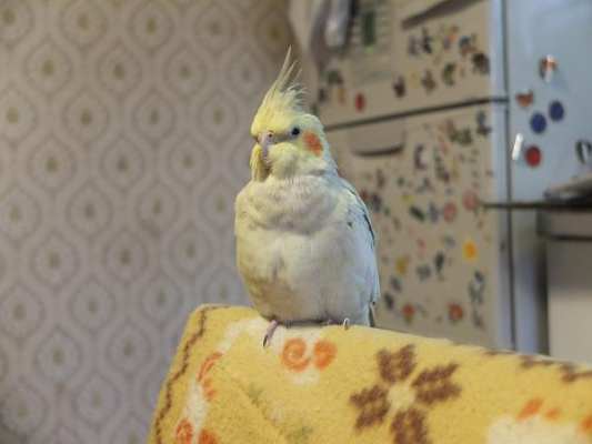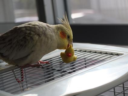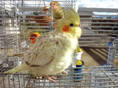 キンカの小夏が来てからというもの、彼にはさほど興味は示しませんが、小夏のケージをとても気に入って、放鳥中はほぼ、小夏んちの屋根でくつろいだり、羽繕いをしたり、とにかく、まったりしています。