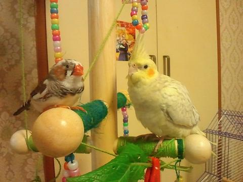 写真は昨日の夜の放鳥タイムです♪
