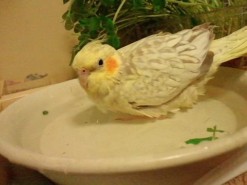 家のオカメは水を怖がり入らず、霧吹きは断固拒否です。