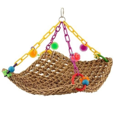 シーグラス(海草)で編まれたブランコ型プレイジムです。