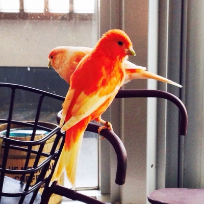 先に迎えたのは赤カナリアでお迎え時はまだ薄いオレンジでしたが