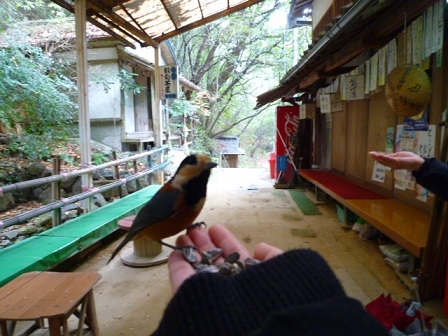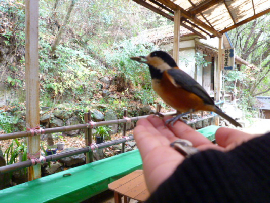 生まれて初めて野鳥が手のひらに乗り、540段の階段を往復し疲れた事も吹き飛ばす、素敵な出来事でした。