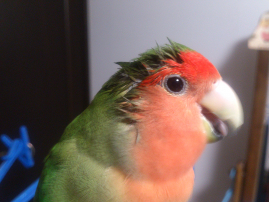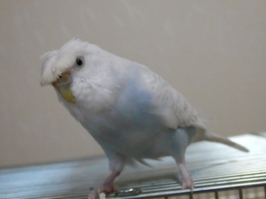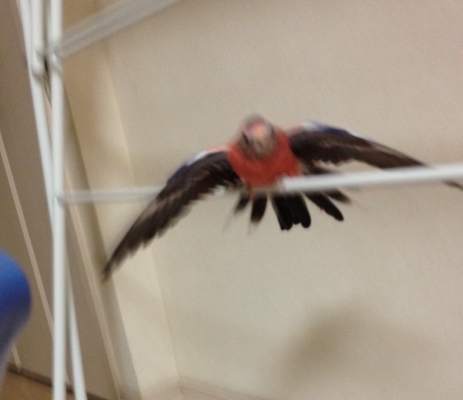 さて、別トピですが、アキクサインコはアキクサ扇というのを見せてくれるらしいです。とても美しいですよ(他の鳥さんはやらないのでしょうか?)。で、実はサンゴも見せてくれていた様なのですが、知識の無い私は面白い格好するなぁっと思い、正面から写真を撮ってしまった。次回は是非、アキクサ扇を皆さんに披露したいと思います。でも、折角なのでアキクサ扇を前から見たら!?『サンゴの舞』という事で写真載せますね〜。