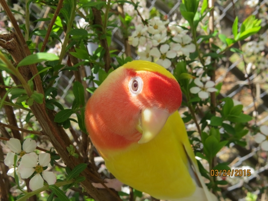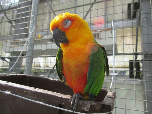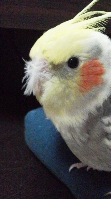 インコってば、たまに目に綿毛が付いていたりしますが痛くないのかな?