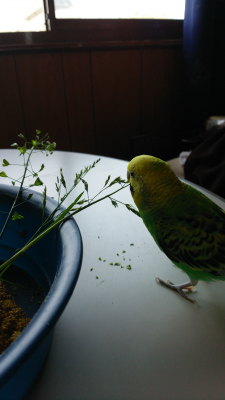 ウチのフクちゃんは水浴びが好きなんですけど、放鳥の時に水浴びしないでいると、青菜入れの水差しに頭を突っ込むという少々危険なアピールしてきます。