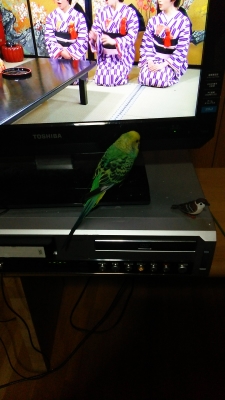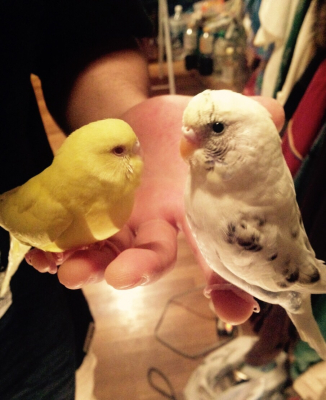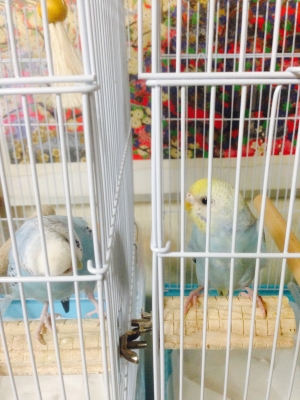 昨日、姉の家に遊びに行った時にエル&ソラを連れて行ったんだけど(姉の家にもインコが居て)エル&ソラとご対面させたら、どうもソラと姉の家のインコと仲良しさんになってくれたみたいで、、。初めてお互いの毛づくろいをしてる所を見ました〜ずっと二人が突っ張り棒でいつもと違う鳴き方をしながら、お互いの毛づくろいなどしてました〜 エルは相変わらずカゴの中で様子を見て、出たり入ったり、、、。なんか複雑な