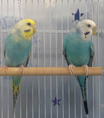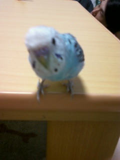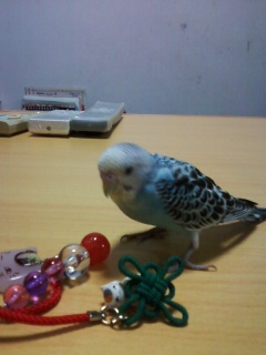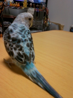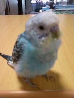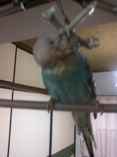 はじめまして〜ご挨拶がおそくなってしまい、ごめんなさいm(__)mウチにもオパーリンブルー(一緒かな?)のエルとレインボーのソラが居ます〜 まだ雛チャンですよね?何にでも興味シンシンでイタズラ大好き・・ですね〜可愛いなぁ(☆_☆)━━━━━☆