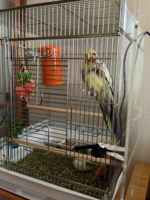 水浴びは、オカメインコはあまりしないと聞いてたのですが、セキセイインコが水浴びしてると横で、クビを傾げてみています。セキセイが小屋に帰るとついて行く・・・なんてこともあるので、自分で小屋に帰るであろうと。。。。