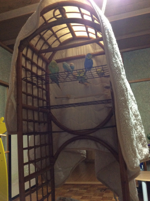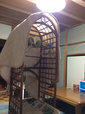 夜の寝ぐらをバージョンアップしました。 鳥さん達は基本的に高い所が好きなので快適そうです。(^_^)