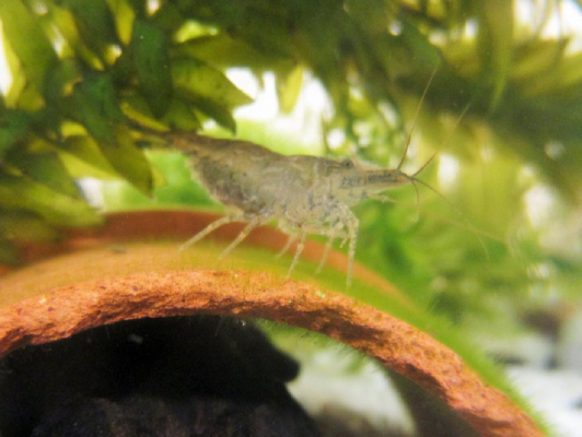 小っちゃいエビ大好きですよ〜!金魚、ドジョウ、タニシも好物です。ザリガニも食べます(^^)v