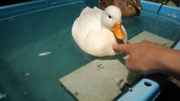 >アヒルって成鳥になりさえすればわりと丈夫な鳥だそうです。たしかに小鳥にくらべるとずっとタフです。