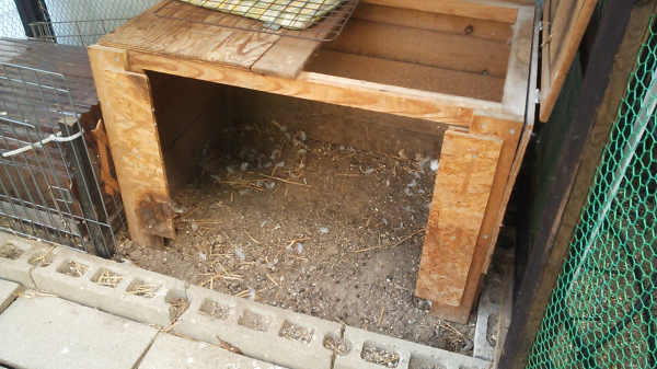 小屋は2重になっていて、この木の小屋は網の小屋の中にあります。