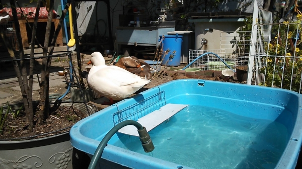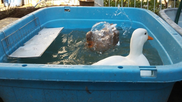 水かえした所での、水浴びは気持ちよさそう〜〜〜デスネ。( ^)o(^ )