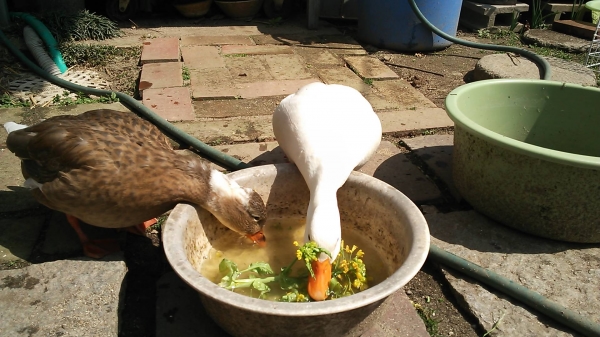 野生の鴨も採餌するときにやってますよね。