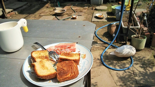 2羽分のスペースはあるんだから一緒にプランターで寝れば良いのにと思うんですが白ちゃんは遠慮深いですね(^◇^;)